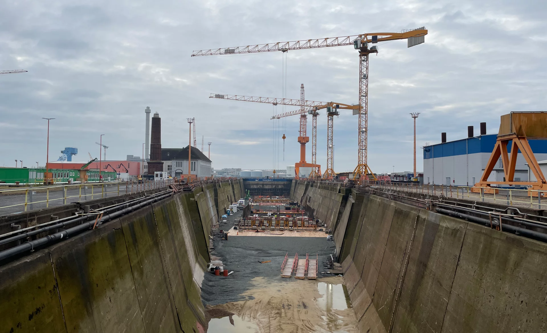 Die erschwerte Zugänglichkeit bzw. Befahrbarkeit, insbesondere im Niedervieland, erforderte eine genaue Planung der Flucht- und Rettungswege. Darüber hinaus waren intensive Abstimmungen mit dem Koordinator für kontaminierte Bereiche auf Flächen des Bundes notwendig. Die Betriebsabläufe auf dem Festland und Wasser mussten in die SiGe-Unterlagen integriert werden. Eine große Herausforderung stellte die Schlackenkippe in unmittelbarer Nähe zur Baustelle auf dem Gelände des Stahlwerks dar. Hier wurden Schutzmaßnahmen festgelegt.