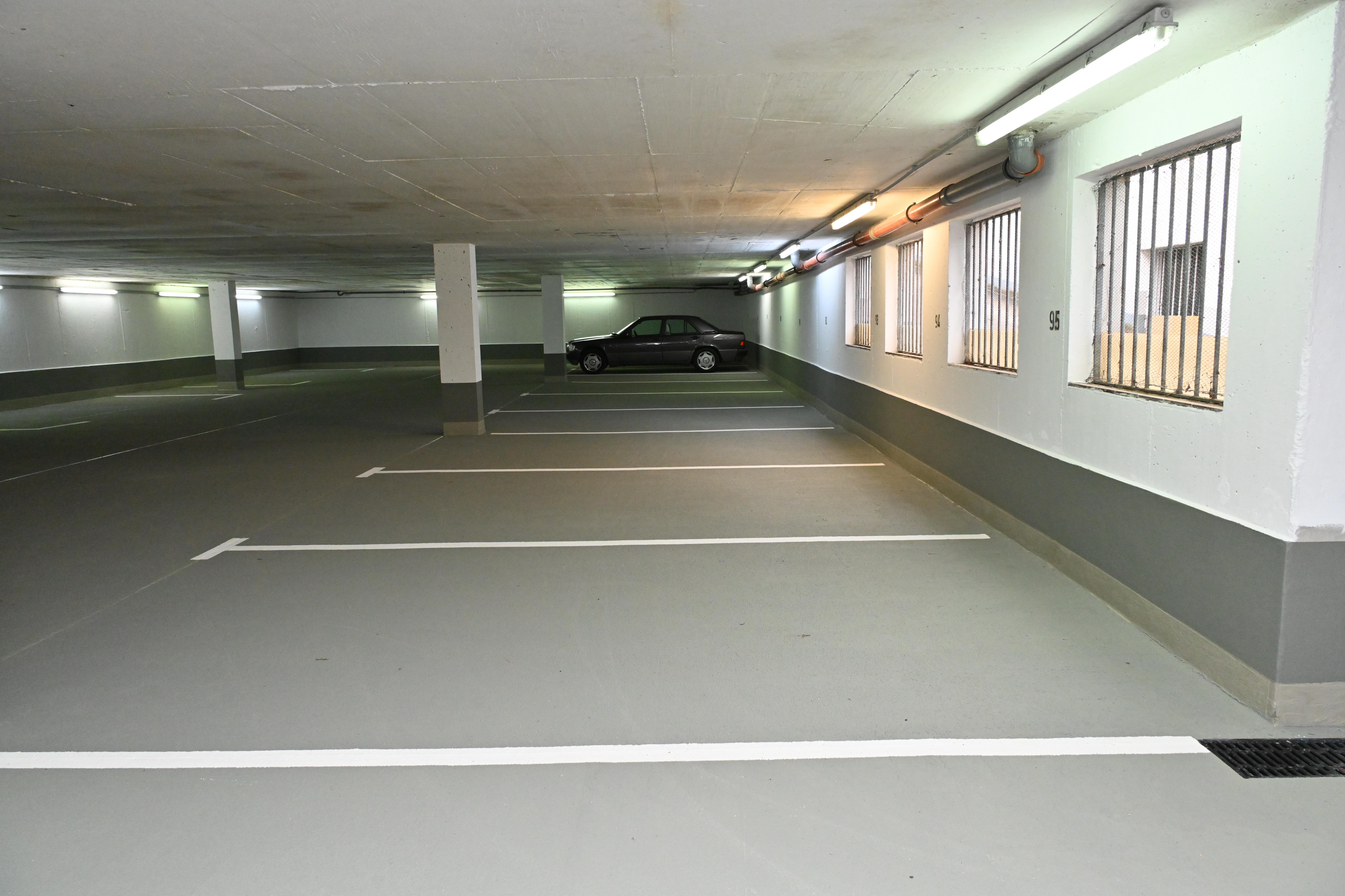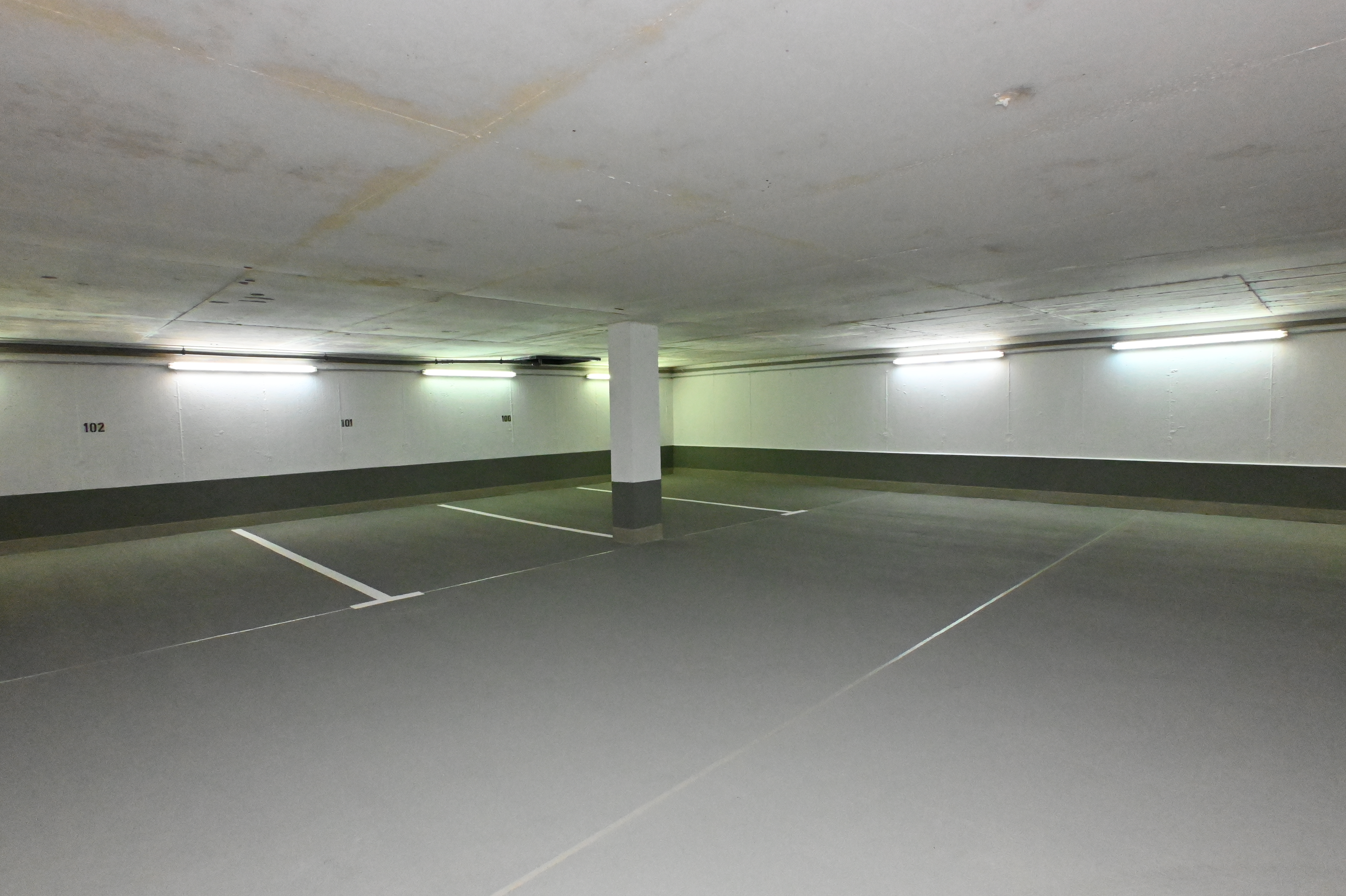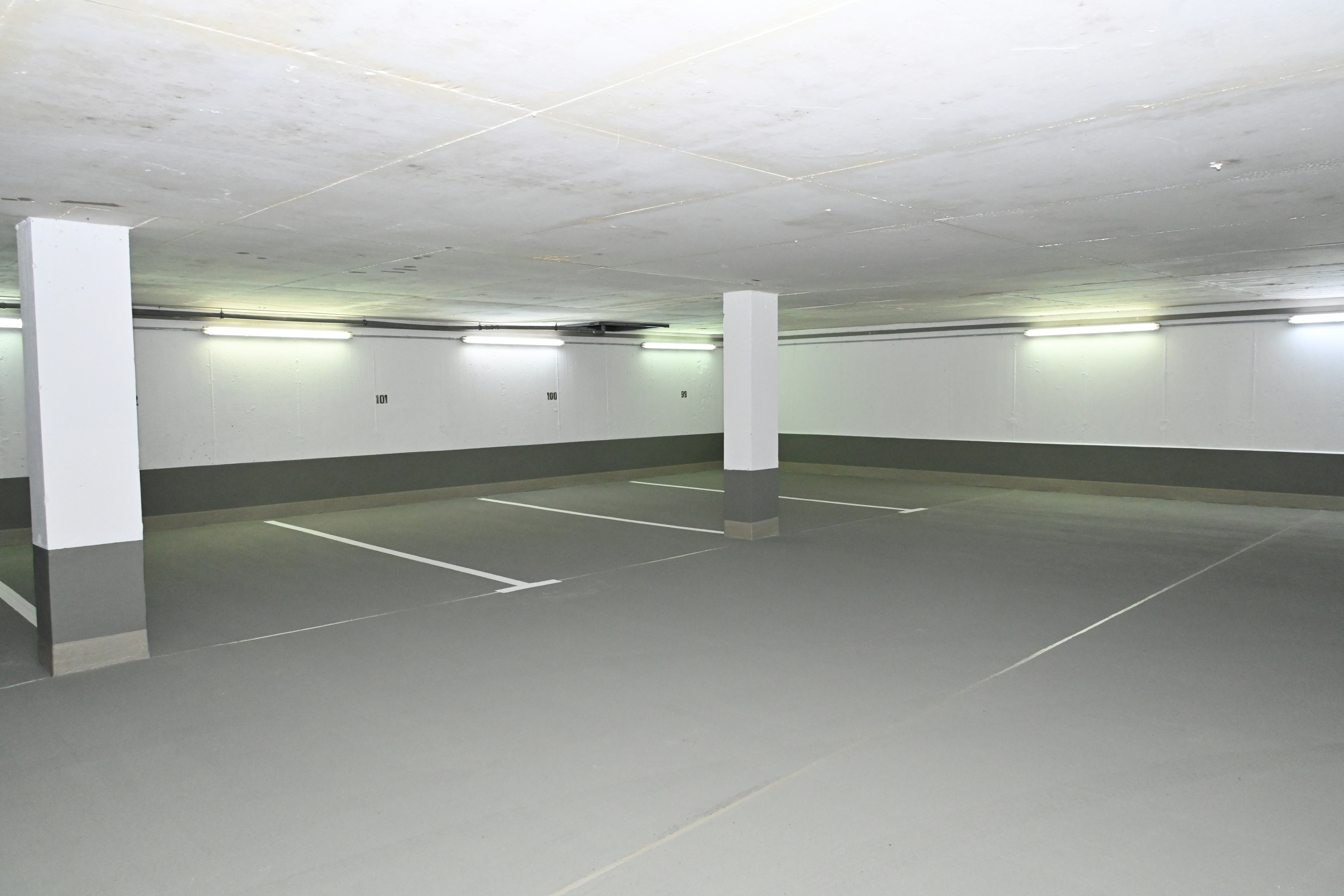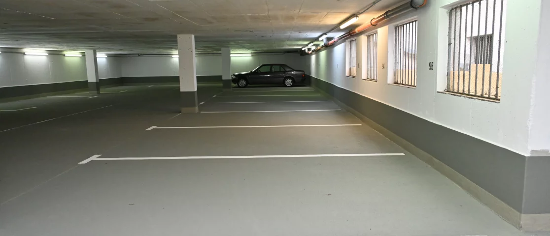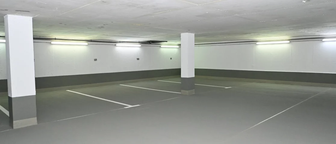 Im Rahmen der Instandsetzung der Tiefgarage Ricarda-Huch-Straße in Oldenburg wurde die Beschichtung der Tiefgarage auf der Bodenfläche sowie im Spritzwasserbereich von Wänden und Stützen vollständig erneuert.