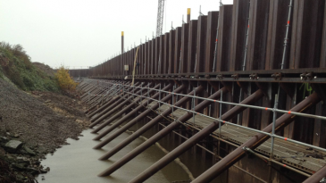 Das ehemalige Tanklager der Esso Deutschland GmbH befindet sich an der Stadtstrecke der Weser in Bremen. Die 250m lange Böschung wird durch eine einfach rückverankerte Spundwandkaje mit Schlossdichtungen aufgewertet. Aufgrund der vorliegenden Kontaminationen des Bodens ist eine Forderung den Wasserüberdruck bis OK Gelände anzusetzen, die Spundwand wird mit Schlossdichtungen versehen.