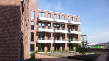 Das KUBOX-Quartier „Fleethöfe" mit Blick auf die Hunte entsteht auf einer Freifläche im Gebiet der Oldenburger Stadthafenentwicklung. Das Quartier bilden zwei architektonisch moderne und ansprechende Baukörper mit insgesamt 84 Eigentumswohnungen mit zukunftsweisendem Energiekonzept.