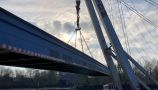 Südwestlich der bestehenden Cäcilienbrücke ist eine temporäre Behelfsbrücke für Fußgänger und Radfahrer errichtet worden.